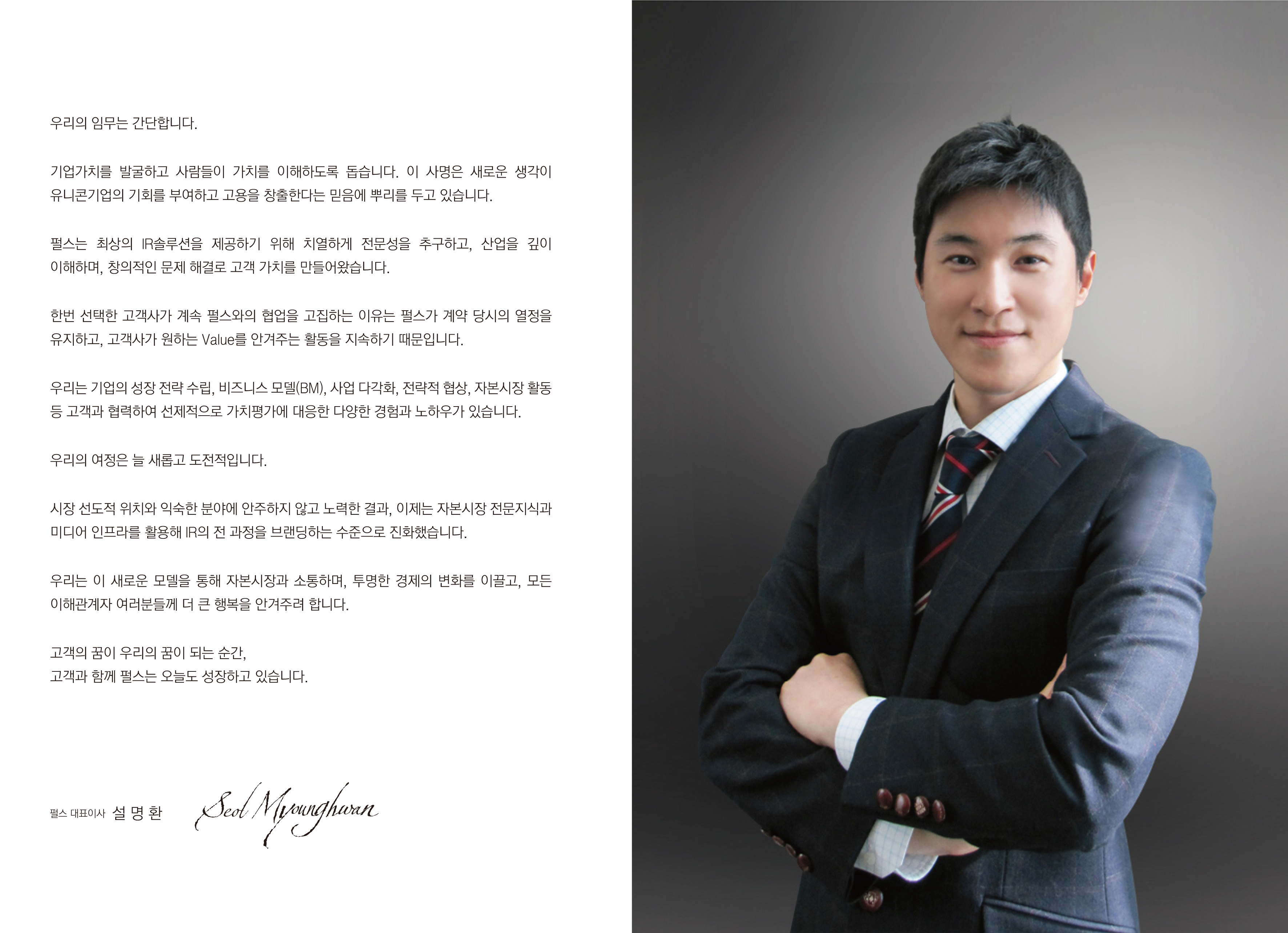 펄스는 기업 전략 설계 전문기업입니다. 'PULSE' 라는 사명에는 고객의 심장을 뛰게 하는 심폐소생술(CPR)과 같은 전략을 만들어야 한다는 설립자의 철학이 깃들어 있습니다. 펄스는 기업이 직면한 다양한 도전과 위협에 대한 대응을 돕습니다. 자본시장 전문지식과 산업에 대한 깊은 통찰력으로 기업가치 개선 및 주주가치 제고를 지원하며, 이해관계자들에게 전달하고자 하는 바를 전략적이고 직관적으로 전개합니다.